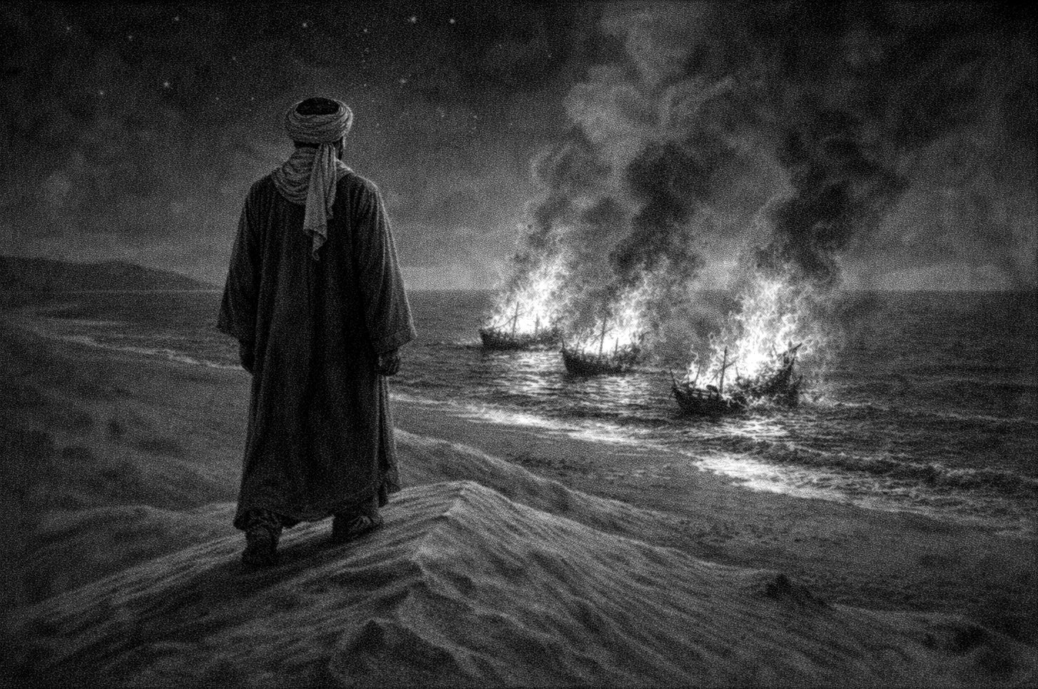 حين التفت الجنود ورأوا سفنهم تحترق وتغوص في قاع المحيط، أدركوا أن المساومة قد انتهت. لم يعد هناك خط رجعة. إما الانتصار، أو الموت على هذا الشاطئ.